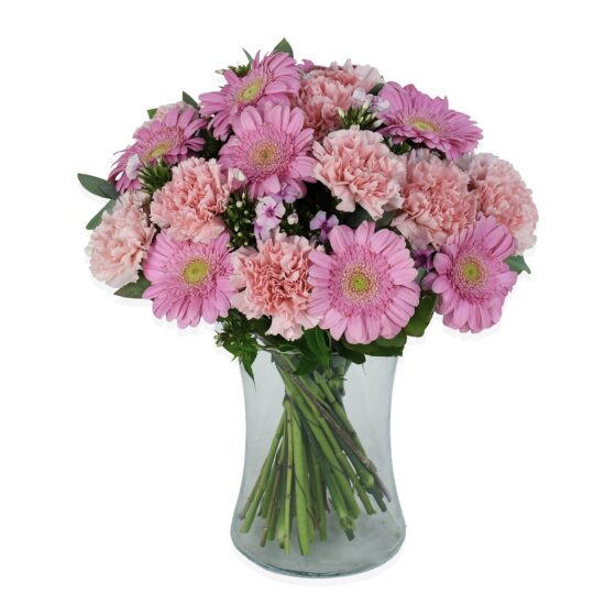 Cheerful germini, classic carnations and delicate phlox come together in a bouquet that is fresh, vibrant and unapologetically bold. Fun, bright and guaranteed to put a smile on anyone’s face.