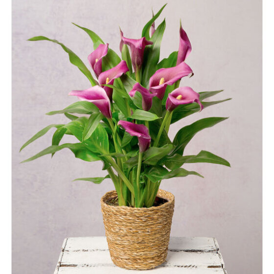 This gorgeous Calla Lily plant with unique trumpet shaped flowers will make an excellent addition to a loved one’s home. Delivered in a seagrass pot and stands approximately 40-50cm tall. Please note, this plant is considered toxic and care should be taken to ensure it is not consumed by pets or children.