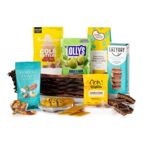 Delight in conscious indulgence with the Veritably Vegan Hamper, presented in a lively green gift bag and curated to surprise and satisfy. Every item is plant-based and packed with flavour. Enjoy the indulgent layers of Lazy Day Millionaire’s Shortbread and the crunchy, rich Ooh! Chocolata Vegan Honeycomb Milk Chocolate. Savour the sweet-and-savoury balance of Arran Fine Foods Pear & Plum Chutney paired with Easy Bean Yellow Pea & Sunflower Seed Crackers. For a playful pop of flavour, enjoy Love Popcorn Salty Sweet Popcorn or the creamy Melting Pot Vegan Madagascar Vanilla Fudge. Add texture with Mr. Filbert’s Sea Salt & Herb Mixed Nuts and the bold, aromatic Oloves Basil & Garlic Green Olives. This hamper contains 7 items: Easy Bean Chickpea, Turmeric & Nigella Seed Crackers 150g Forest Feast Salt & Cider Vinegar Slow Roasted Nut Mix 40g Lazy Day Salted Caramel Crispies 150g Olly’s Olives Garlic & Basil Green Olives 50g Ooh! Chocolata Dairy Free & Vegan Honeycomb Milk Chocolate 50g Sweet Lounge Fizzy Cola Bottles 65g Brown Tray Packed in green gift bag.